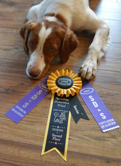 We are so happy to have Vixey as part of our family! Vixey is a Brittany Spaniel with lots of energy and full of personality. She loves to play and learn new things, but is always up for a snuggle. Vixey has been trained CKC obedience, Sporting Detection, rally obedience, and is achieving her trick dog titles.